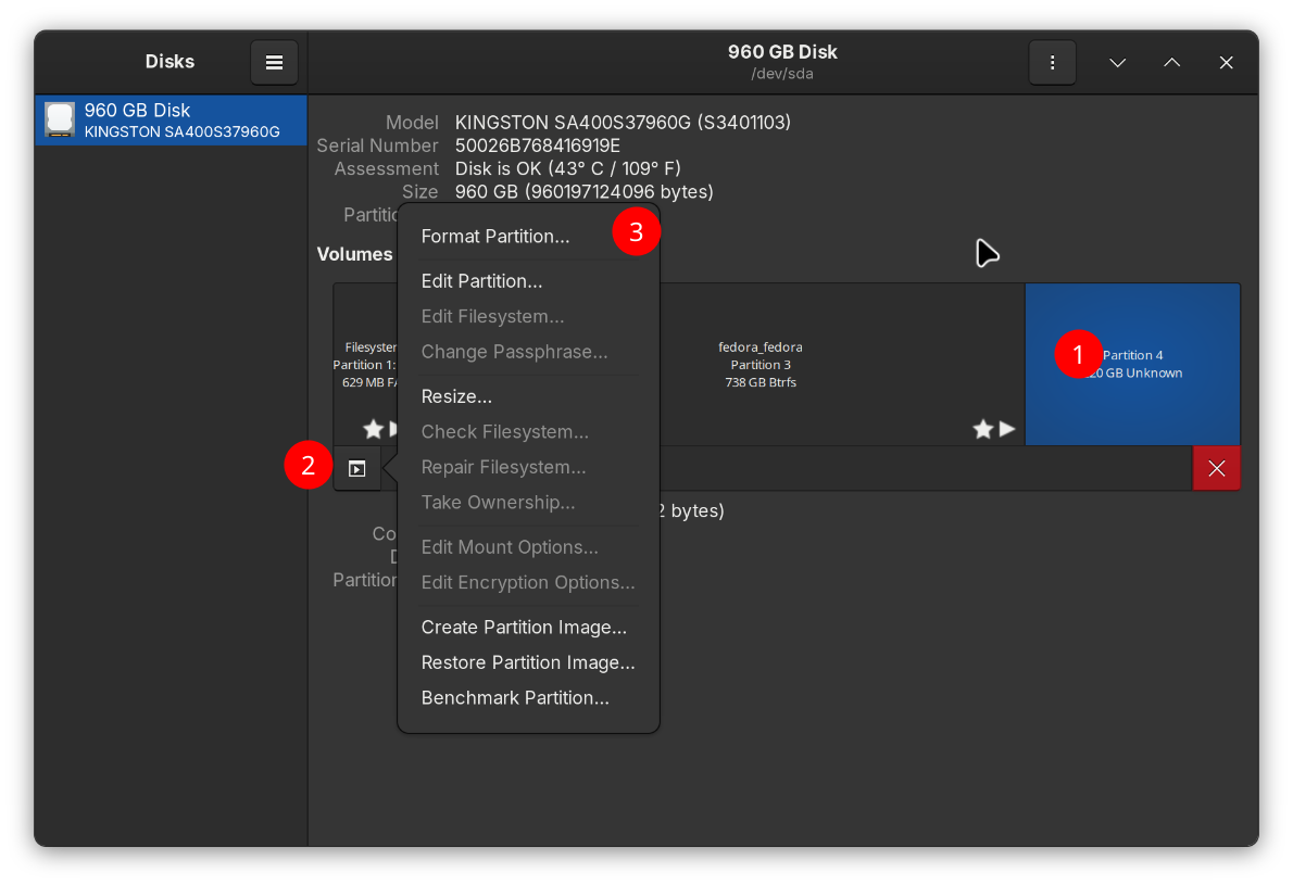 Now reboot, your partition should be mounted automatically. Should appear under /run/media/system/PARTITION_NAME.