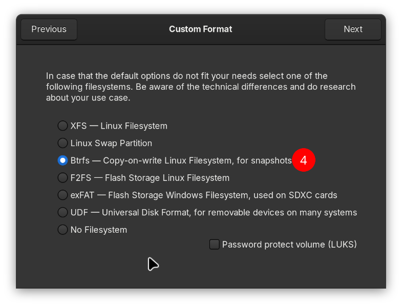 Bazzite only supports BTRFS/Ext4 filesystems for reporting issues.