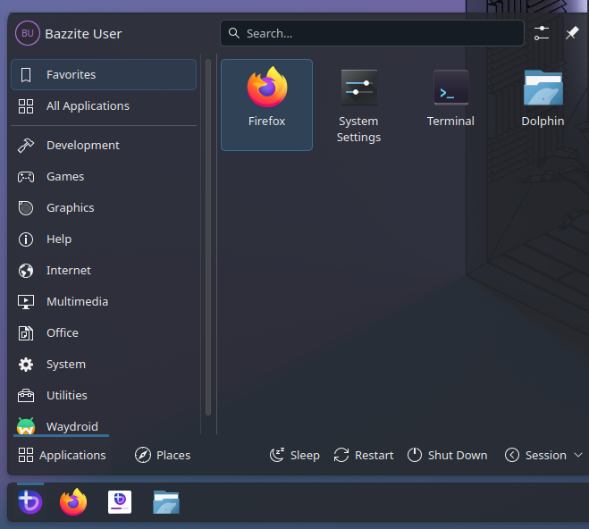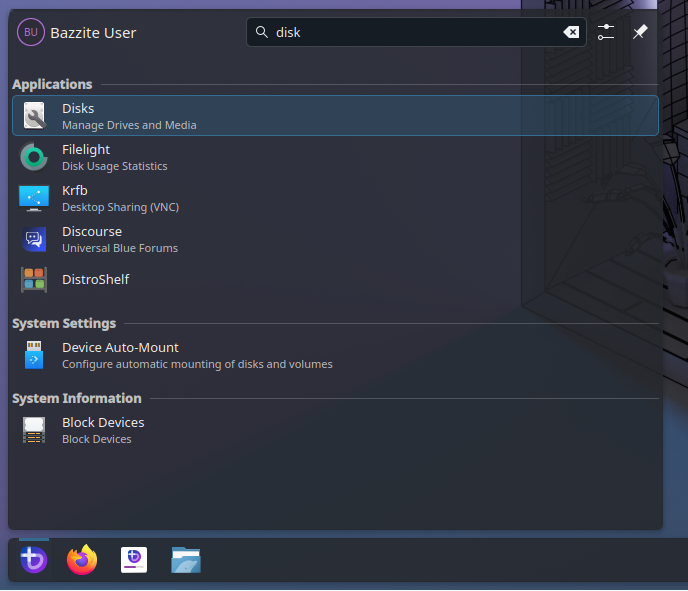 - Boot into the Bazzite installer (the Legacy Installer will not work for this) and open the Application Menu
